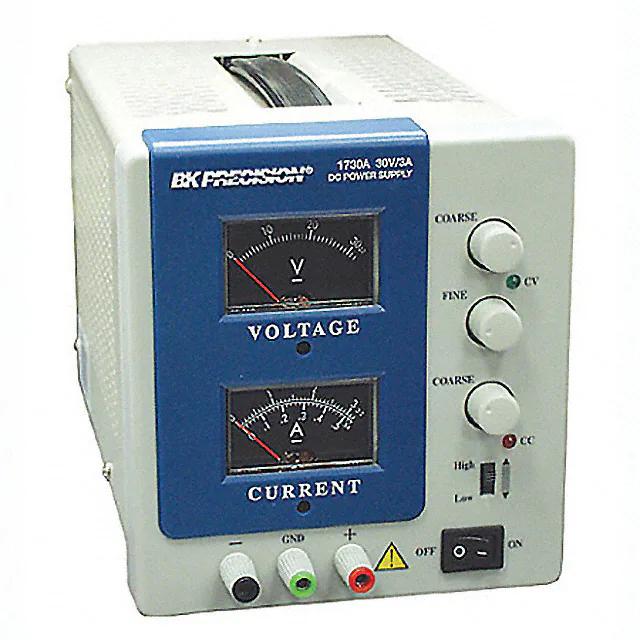 This is manufactured by B&K Precision. The manufacturer part number is 1730A. It is assigned with possible HTSUS value of 8504.40.9530. The product is not applicable. Its typical moisture sensitivity level is not applicable. It comes in bench (ac to dc) configuration. In addition, it is reach unaffected. While, the output current includes 0 ~ 3a. It is shipped in box. The product's diameters include 12.500" l x 5.500" w x 6.200" h (317.50mm x 139.70mm x 157.48mm). It features a remarkable analog (2) display. The splendid features of the product include constant current and constant voltage indicators. The typical product's weight is 11 lbs (5 kg). The product 1730, is a highly preferred choice for users. Furthermore, the output voltage is 0 ~ 30vdc. It has optimum voltage supply of 120vac. Additionally, the product is supplied with 1 outputs. The product is designated with the ear99 code number