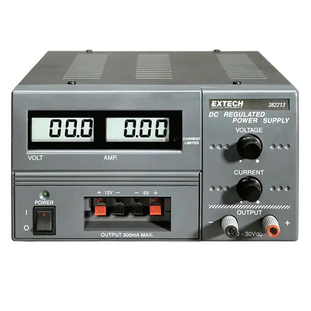 This is manufactured by FLIR Extech. The manufacturer part number is 382213. It is assigned with possible HTSUS value of 8504.40.9580. Additionally, the product is supplied with 3 outputs. Its typical moisture sensitivity level is not applicable. It comes in bench (ac to dc) configuration. While, the output current includes 0 ~ 3a. It is shipped in box. The product's diameters include 9.500" l x 6.000" w x 5.600" h (241.30mm x 152.40mm x 142.24mm). Consists of 3 (2) characters. It has a long 6 weeks standard lead time. It features a remarkable lcd display. The splendid features of the product include constant current and constant voltage indicators. Furthermore, the output voltage is 0 ~ 30vdc. It has optimum voltage supply of 110 ~ 220vac. The product is designated with the ear99 code number