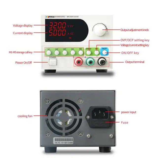 This is manufactured by MATRIX TECHNOLOGY INC.. The manufacturer part number is MPS-3206. The product is not applicable. The product features power and watts of 192w. It comes in bench (ac to dc) configuration. In addition, it is vendor undefined. While, the output current includes 0 ~ 6.1a. It is shipped in bulk. The product's diameters include 10.276" l x 4.528" w x 3.780" h (261.00mm x 115.00mm x 96.00mm). Consists of 4 (2) characters. It features a remarkable led display. The splendid features of the product include programmable. The product mps-3206, is a highly preferred choice for users. Furthermore, the output voltage is 0 ~ 32v. It has optimum voltage supply of 110 ~ 220vac. Additionally, the product is supplied with 1 outputs.