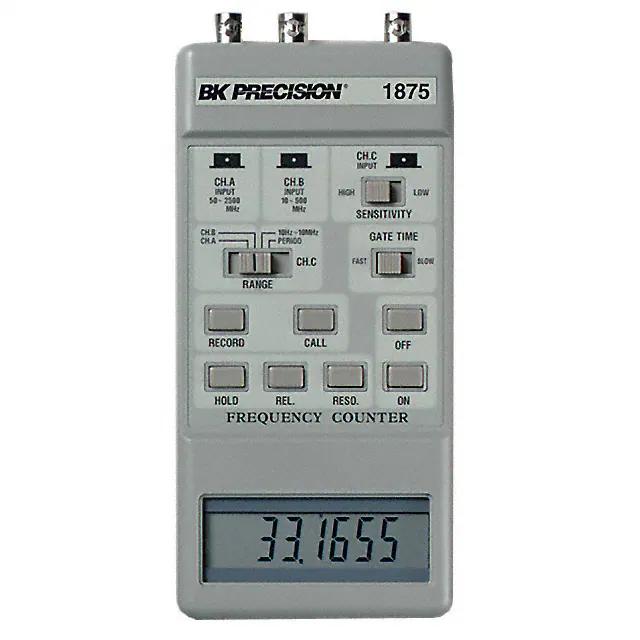 This is manufactured by B&K Precision. The manufacturer part number is 1875. This is basically a useful and handy frequency counter. It is assigned with possible HTSUS value of 9030.33.3800. The typical product's weight is 0.75 lb (340.19 g). The product is not applicable. In addition, it is reach unaffected. Its typical moisture sensitivity level is not applicable. The product is suitable for use with frequency measurement. The product is designated with the ear99 code number