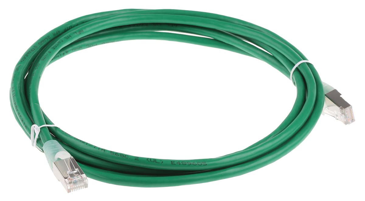 This is 3m F/UTP PVC Cat5e Ethernet Cable Assembly Green manufactured by RS Pro. The manufacturer part number is 557-313. The item is shielded with a f/utp. Its accurate length is 3m.