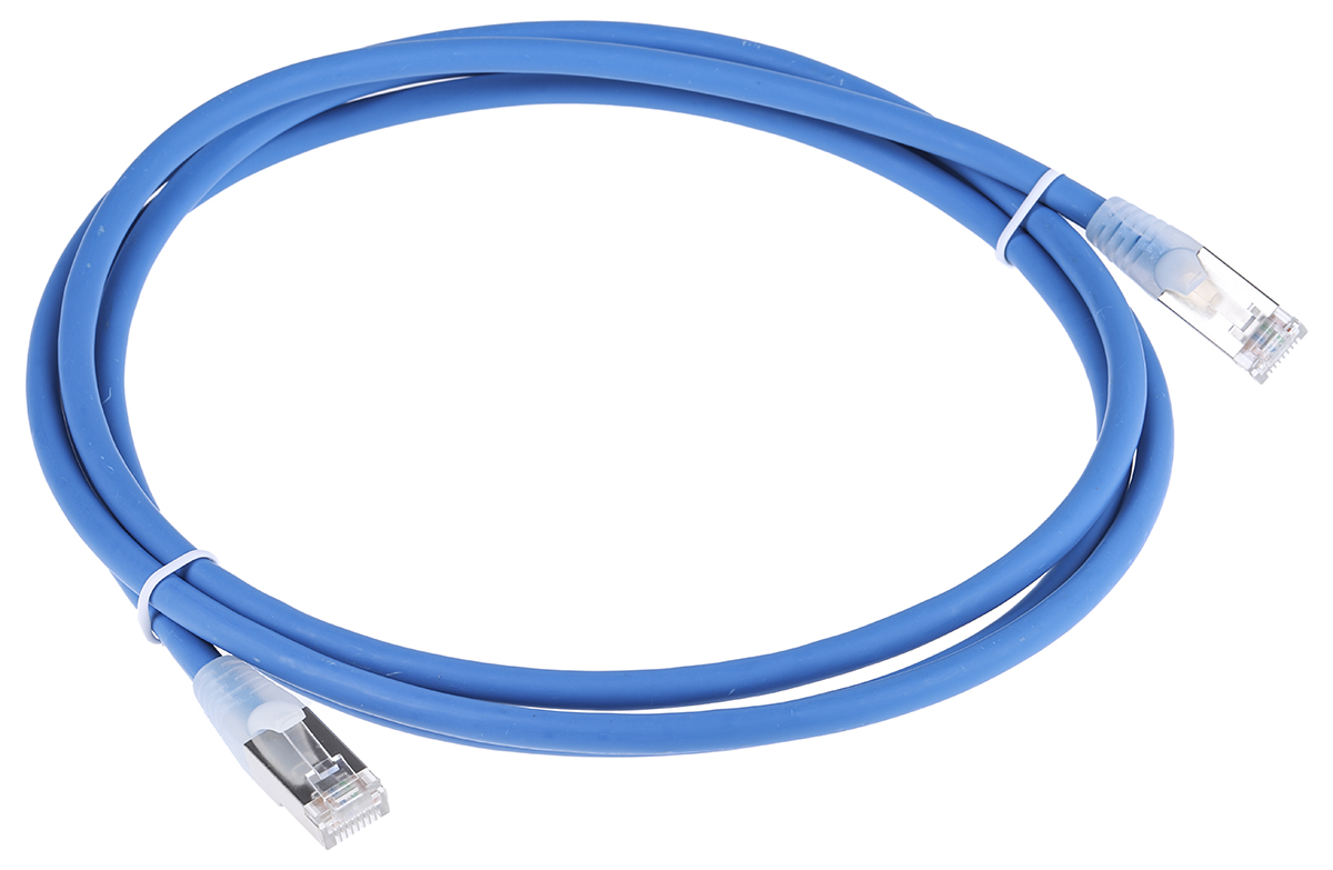This is 2m Straight Through Cat6a Cable Assembly S/FTP Blue LSZH manufactured by RS Pro. The manufacturer part number is 778-5152. The item is shielded with a s/ftp. Its accurate length is 2m.