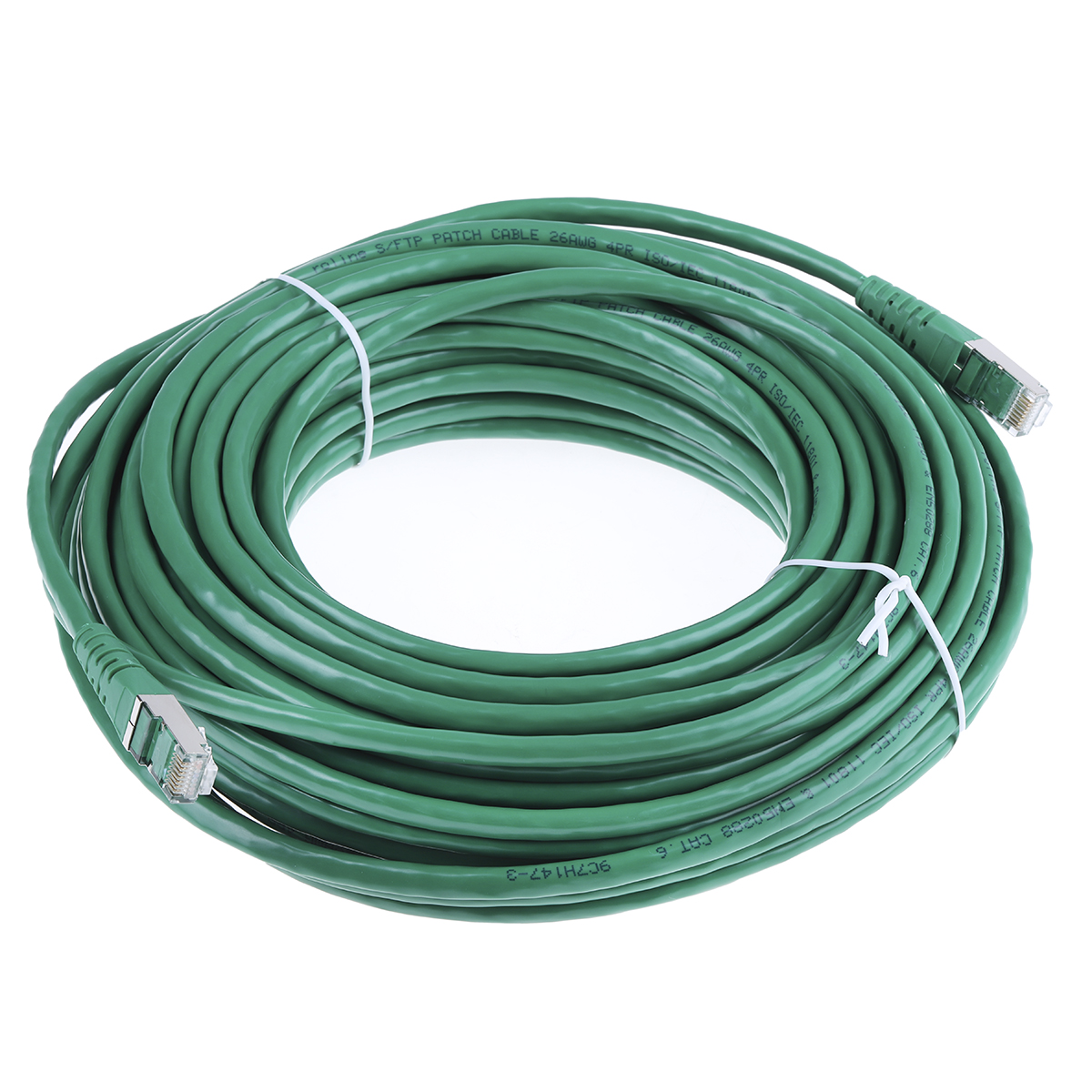 This is Green 20m Cat6 Ethernet Cable Assembly RJ45 manufactured by Roline. The manufacturer part number is 21.15.1403-20. The item is shielded with a s/ftp. Its accurate length is 20m.