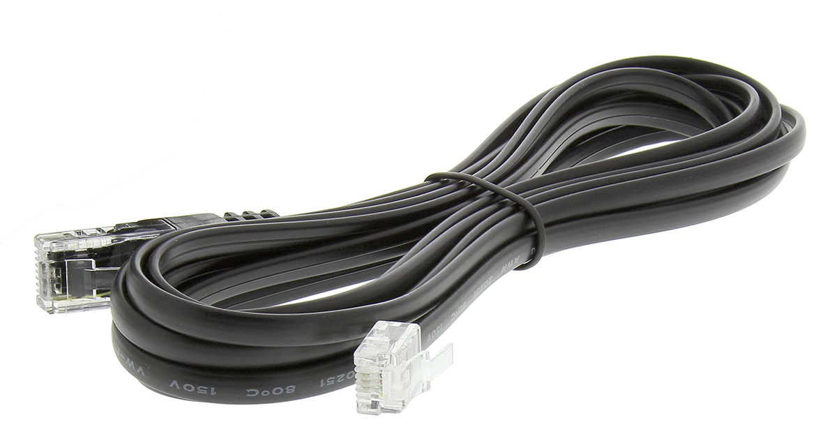 This is Forgos Black Cat5 Cable 3m Male RJ45/Male RJ12 manufactured by Decelect. The manufacturer part number is SPE190684. Its accurate length is 3m.