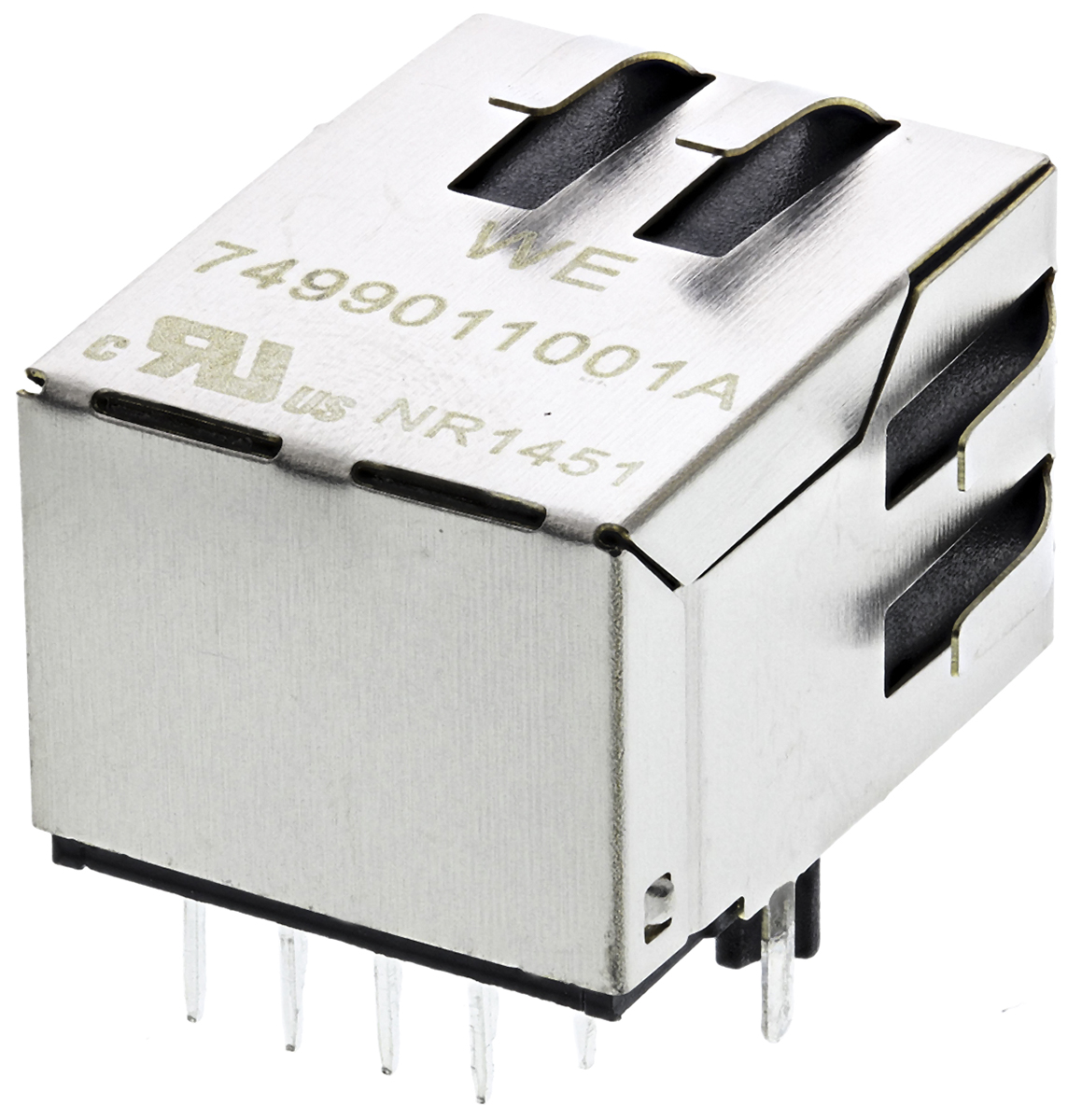 This is PCB Mount RJ45 Connector Female manufactured by Wurth Elektronik. The manufacturer part number is 7499011001A. The product is available in pcb mount configuration. In addition, female is the available "Gender" of the product. Its accurate length is 13.95mm. Furthermore, the product is 15.88mm wide. The product comes in 21.84mm depth.