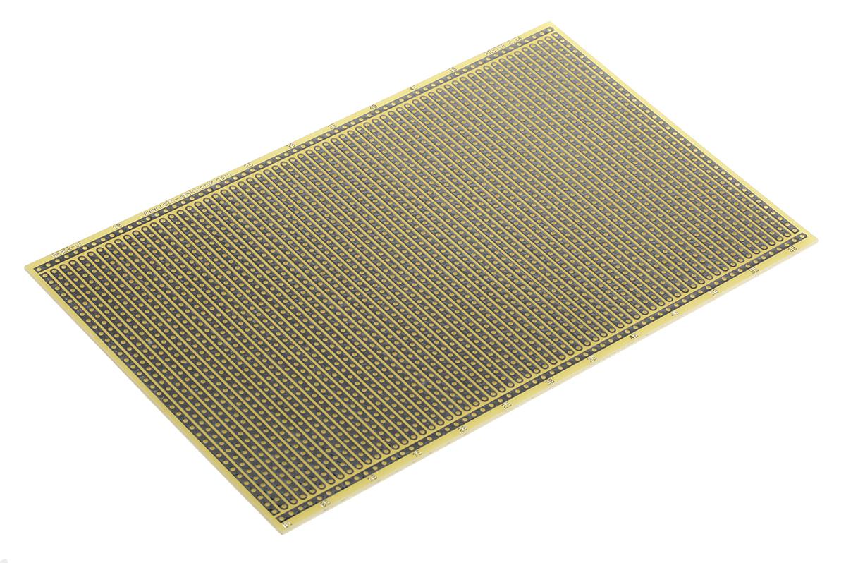 This is Single Sided Eurocard PCB FR4 with 36 x 62 1mm Holes 2.54 x 2.54mm Pitch 160.01 x 100mm manufactured by Roth Elektronik. The manufacturer part number is RE512-LF. The given dimensions of the product include 160.01 x 100 x 1.5mm. It is 1.5mm thick. Furthermore, the product is 100mm wide. Its accurate length is 160.01mm.