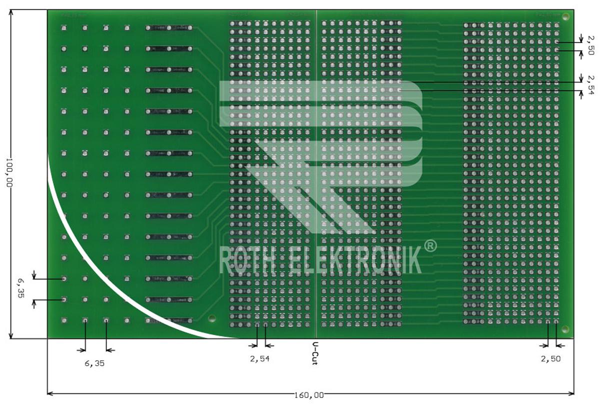 This is Eurocard manufactured by Roth Elektronik. The manufacturer part number is RE650-LF. The given dimensions of the product include 160 x 100 x 1.5mm. It is 1.5mm thick. Furthermore, the product is 100mm wide. Its accurate length is 160mm.