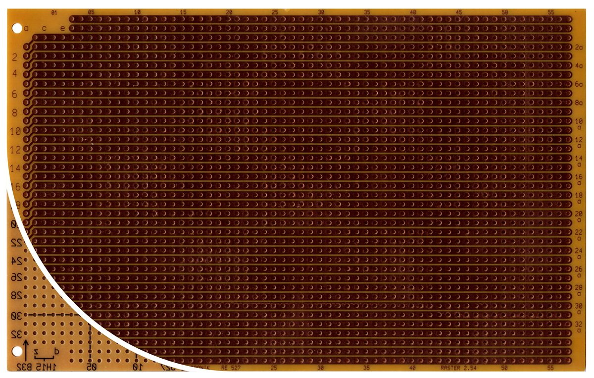 This is Single Sided DIN 41612 C/D Eurocard PCB FR2 with 38 x 57 1mm Holes 2.54 x 2.54mm Pitch 160 x 100 x 1.5mm manufactured by Roth Elektronik. The manufacturer part number is RE527-HP. The given dimensions of the product include 160 x 100 x 1.5mm. It is 1.5mm thick. Furthermore, the product is 100mm wide. Its accurate length is 160mm.