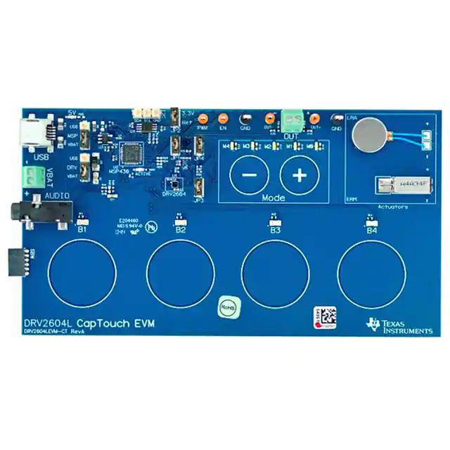 This is manufactured by Texas Instruments. The manufacturer part number is DRV2604LEVM-CT. It is assigned with possible HTSUS value of 8543.70.9860. The product is rohs3 compliant. The secondary attributes of the product include: on-board leds. It comes in power management configuration. It performs basic function of motor controller/driver, haptic/vibration. In addition, it is reach unaffected. Embedding Options: yes, mcu, 16-bit. It is shipped in box. Its typical moisture sensitivity level is 1 (unlimited). Additionally, [Utilised IC / Part] is the used part of the product. The product is also supplied with contents, such as board(s), cable(s). Moreover, it corresponds to drv2604, a base product number of the product. The product is designated with the ear99 code number
