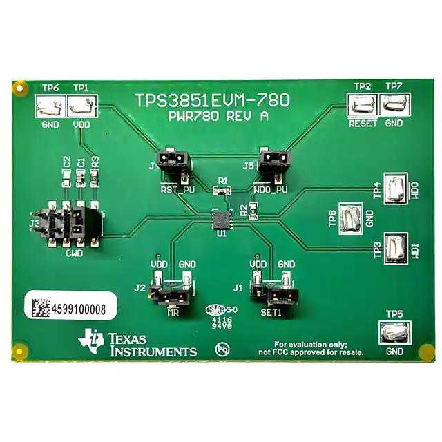 This is manufactured by Texas Instruments. The manufacturer part number is TPS3851EVM-780. It is assigned with possible HTSUS value of 8473.30.1180. The product is not applicable. It comes in power management configuration. It performs basic function of power supply supervisor/tracker/sequencer. In addition, it is reach unaffected. It is shipped in bulk. Its typical moisture sensitivity level is 1 (unlimited). Additionally, [Utilised IC / Part] is the used part of the product. The product is also supplied with contents, such as board(s). Moreover, it corresponds to tps3851, a base product number of the product. The product is designated with the ear99 code number
