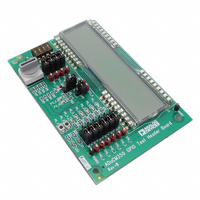 This is manufactured by Analog Devices Inc.. The manufacturer part number is EV-ADUCM350GPIOTHZ. It is assigned with possible HTSUS value of 8543.70.9860. The product is rohs3 compliant. It comes in interface configuration. It performs basic function of analog front end (afe). In addition, it is reach unaffected. Embedding Options: yes, mcu, 32-bit. It is shipped in bulk. Its typical moisture sensitivity level is 1 (unlimited). It has a long 8 weeks standard lead time. Additionally, [Utilised IC / Part] is the used part of the product. The product is also supplied with contents, such as board(s). Moreover, it corresponds to aducm350, a base product number of the product. The product is designated with the ear99 code number