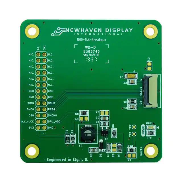 This is manufactured by Newhaven Display Intl. The manufacturer part number is NHD-0.6-BREAKOUT. It is assigned with possible HTSUS value of 8473.30.1180. The product is rohs3 compliant. The secondary attributes of the product include: spi interface. It comes in display configuration. It performs basic function of breakout board. In addition, it is reach unaffected. It is shipped in tray. Its typical moisture sensitivity level is not applicable. Additionally, [Utilised IC / Part] is the used part of the product. The product is also supplied with contents, such as board(s). Moreover, it corresponds to nhd-0.6, a base product number of the product. The product is designated with the ear99 code number