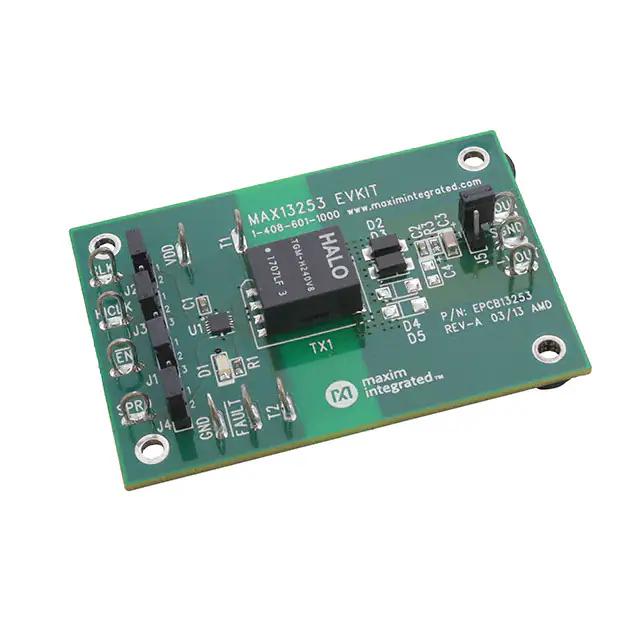 This is manufactured by Analog Devices Inc./Maxim Integrated. The manufacturer part number is MAX13253EVKIT#. It is assigned with possible HTSUS value of 8473.30.1180. The product is not applicable. The secondary attributes of the product include: on-board leds. It comes in power management configuration. It performs basic function of transformer driver. In addition, it is reach unaffected. It is shipped in box. Its typical moisture sensitivity level is 1 (unlimited). It has a long 6 weeks standard lead time. Additionally, [Utilised IC / Part] is the used part of the product. The product is also supplied with contents, such as board(s). Moreover, it corresponds to max13253, a base product number of the product. The product is designated with the ear99 code number