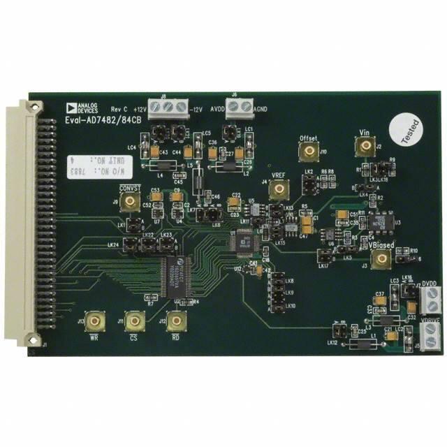 This is manufactured by Analog Devices Inc.. The manufacturer part number is EVAL-AD7484CBZ. The product consists of 14 bits. The product's sampling rate at per second is 3m. Additionally, [Utilised IC / Part] is the used part of the product. It is assigned with possible HTSUS value of 8473.30.1180. It is shipped in box. It acts as a parallel data interface. Additionally, it also contains 1 A/D converters. Typical input range of 0 ~ 2.5v. The product is also supplied with contents, such as board(s). Its typical moisture sensitivity level is 1 (unlimited). Moreover, it corresponds to ad7484, a base product number of the product. The product is designated with the 4a994k2 code number