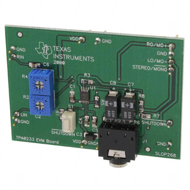 This is manufactured by Texas Instruments. The manufacturer part number is TPA0233EVM. It is assigned with possible HTSUS value of 8473.30.1180. The product is not applicable. It has a maximum output power into channels at given loads, such as 2w x 1 @ 4ohm; 92mw x 2 @ 32ohm. In addition, it is reach unaffected. Furthermore, it has a1-channel (mono) with stereo headphones output. It is a fully populated type. It is shipped in bulk. Its typical moisture sensitivity level is 1 (unlimited). Additionally, [Utilised IC / Part] is the used part of the product. It has optimum voltage supply of 2.5v ~ 5.5v. The product is also supplied with contents, such as board(s). It is a sort of a class ab amplifier. Moreover, it corresponds to tpa0233, a base product number of the product. The product is designated with the ear99 code number