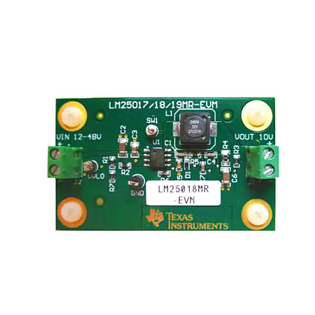 This is manufactured by Texas Instruments. The manufacturer part number is LM25018MR-EVM. Basic Purpose: dc/dc, step down. It is assigned with possible HTSUS value of 8473.30.1180. The product is not applicable. The possible product's input voltage is 12.5v ~ 48v. The switching frequency of the standard product is 440khz. In addition, it is reach unaffected. While, the output current includes 300ma. It is a fully populated type. It is shipped in box. Its typical moisture sensitivity level is 1 (unlimited). The product offers buck regulator topology. Additionally, [Utilised IC / Part] is the used part of the product. Furthermore, the output voltage is 10v. The product is also supplied with contents, such as board(s). The product is designated with the ear99 code number Moreover, it corresponds to lm2501, a base product number of the product. The output and type include 1, non-isolated.