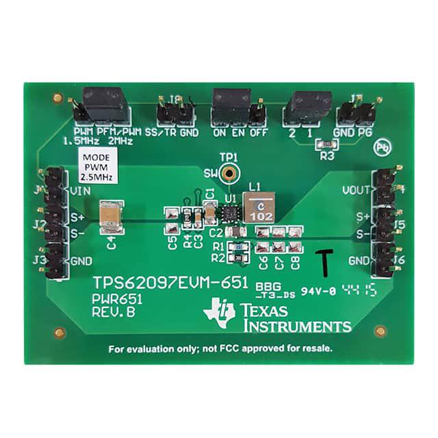 This is manufactured by Texas Instruments. The manufacturer part number is TPS62097EVM-651. Basic Purpose: dc/dc, step down. It is assigned with possible HTSUS value of 8504.40.9580. The product is not applicable. The possible product's input voltage is 2.5v ~ 6v. In addition, it is reach unaffected. While, the output current includes 2a. It is a fully populated type. It is shipped in bulk. Its typical moisture sensitivity level is 1 (unlimited). The product offers buck regulator topology. Additionally, [Utilised IC / Part] is the used part of the product. Furthermore, the output voltage is 1.2v. The product is also supplied with contents, such as board(s). The product is designated with the ear99 code number Moreover, it corresponds to tps62097, a base product number of the product. The output and type include 1, non-isolated.