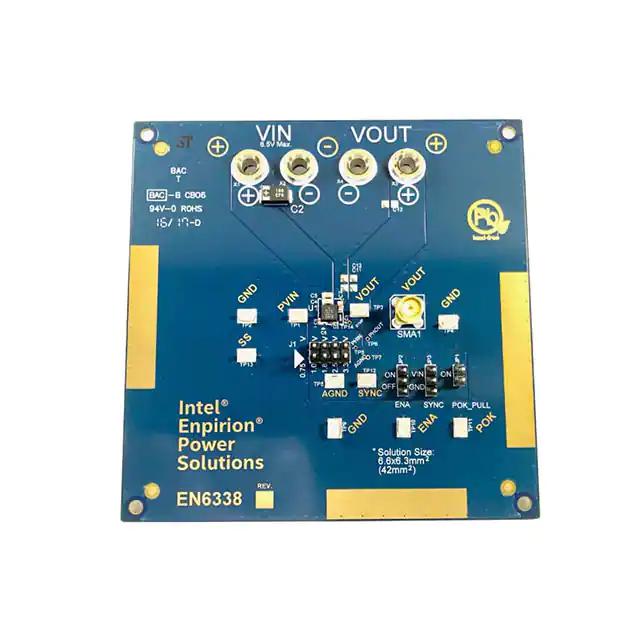 This is manufactured by Intel. The manufacturer part number is EVB-EN6338QI. Basic Purpose: dc/dc converter. It is assigned with possible HTSUS value of 8504.40.9580. The product is rohs non-compliant. In addition, it is reach unaffected. While, the output current includes 3a. It is a fully populated type. It is shipped in bulk. Its typical moisture sensitivity level is 1 (unlimited). Additionally, [Utilised IC / Part] is the used part of the product. The product enpirion®, is a highly preferred choice for users. The product is also supplied with contents, such as board(s). The product is designated with the ear99 code number Moreover, it corresponds to evb-en6338, a base product number of the product.