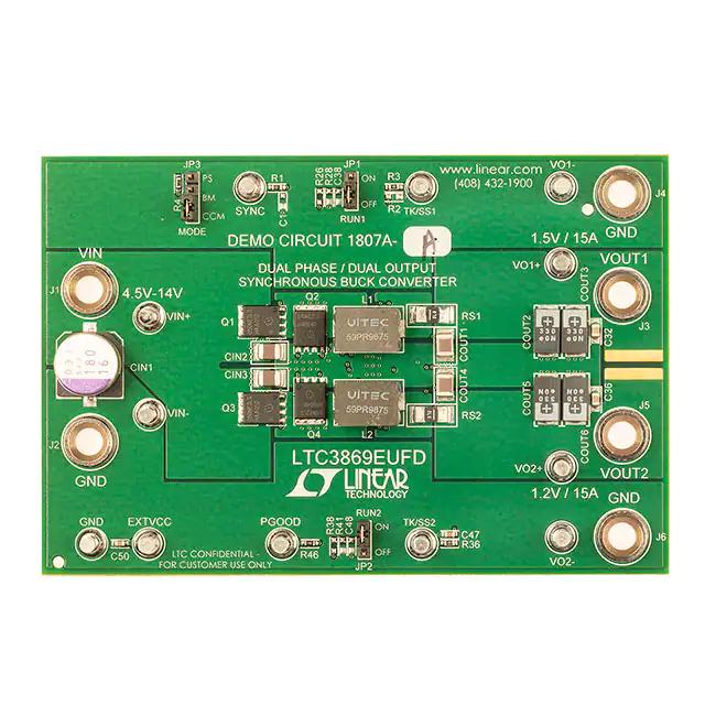 This is manufactured by Analog Devices Inc.. The manufacturer part number is DC1807A-A. Basic Purpose: dc/dc, step down. It is assigned with possible HTSUS value of 8473.30.1180. The product is rohs3 compliant. The possible product's input voltage is 4.5v ~ 14v. The switching frequency of the standard product is 400khz. In addition, it is reach unaffected. While, the output current includes 15a, 15a. It is a fully populated type. It is shipped in box. Its typical moisture sensitivity level is 1 (unlimited). It has a long 8 weeks standard lead time. The product offers buck regulator topology. Additionally, [Utilised IC / Part] is the used part of the product. Furthermore, the output voltage is 1.2v, 1.5v. The product is also supplied with contents, such as board(s). The product is designated with the ear99 code number Moreover, it corresponds to dc1807, a base product number of the product. The output and type include 2, non-isolated.
