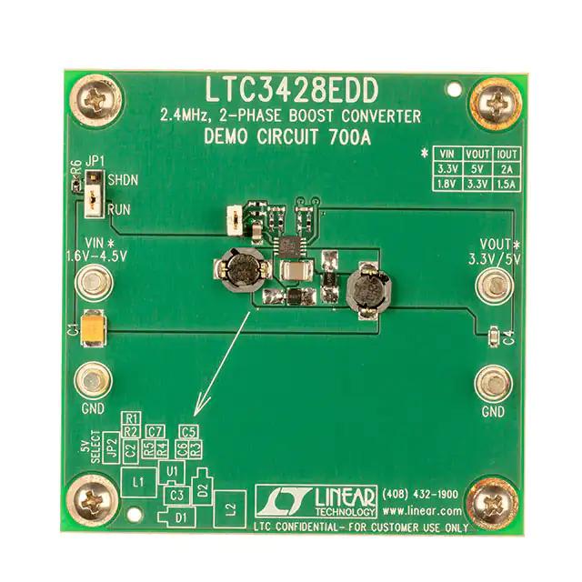 This is manufactured by Analog Devices Inc.. The manufacturer part number is DC700A. Basic Purpose: dc/dc, step up. It is assigned with possible HTSUS value of 8473.30.1180. The product is rohs3 compliant. The possible product's input voltage is 1.8v ~ 4.5v. The switching frequency of the standard product is 2.4mhz. In addition, it is reach unaffected. While, the output current includes 2a. It is a fully populated type. It is shipped in box. Its typical moisture sensitivity level is 1 (unlimited). It has a long 8 weeks standard lead time. The product offers boost regulator topology. Additionally, [Utilised IC / Part] is the used part of the product. Furthermore, the output voltage is 3.3v or 5v. The product is also supplied with contents, such as board(s). The product is designated with the ear99 code number Moreover, it corresponds to dc700, a base product number of the product. The output and type include 1, non-isolated.