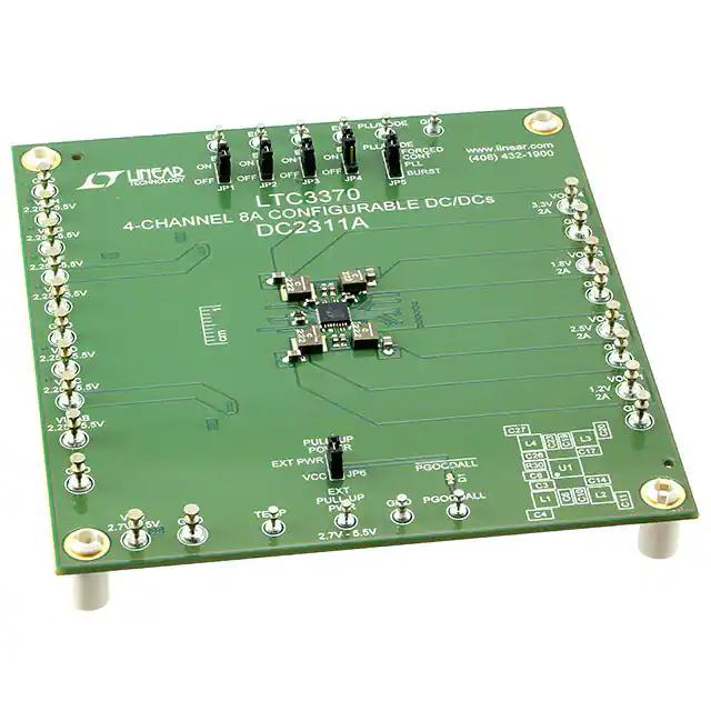 This is manufactured by Analog Devices Inc.. The manufacturer part number is DC2311A. Basic Purpose: dc/dc, step down. It is assigned with possible HTSUS value of 8473.30.1180. The product is rohs3 compliant. The possible product's input voltage is 2.7v ~ 5.5v. The switching frequency of the standard product is 2mhz. In addition, it is reach unaffected. While, the output current includes 2a, 2a, 2a, 2a. It is a fully populated type. It is shipped in box. Its typical moisture sensitivity level is 1 (unlimited). It has a long 8 weeks standard lead time. The product offers buck regulator topology. Additionally, [Utilised IC / Part] is the used part of the product. Furthermore, the output voltage is 1.2v, 1.8v, 2.5v, 3.3v. The product is also supplied with contents, such as board(s). The product is designated with the ear99 code number Moreover, it corresponds to dc2311, a base product number of the product. The output and type include 4, non-isolated.