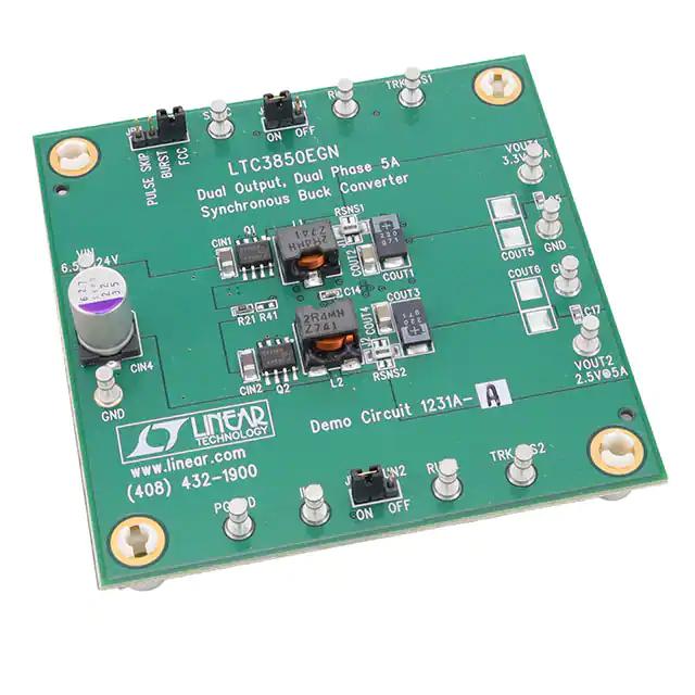 This is manufactured by Analog Devices Inc.. The manufacturer part number is DC1231A-A. Basic Purpose: dc/dc, step down. It is assigned with possible HTSUS value of 8473.30.1180. The product is rohs3 compliant. The possible product's input voltage is 6.5v ~ 24v. The switching frequency of the standard product is 400khz. In addition, it is reach unaffected. While, the output current includes 5a, 5a. It is a fully populated type. It is shipped in box. Its typical moisture sensitivity level is 1 (unlimited). It has a long 8 weeks standard lead time. The product offers buck regulator topology. Additionally, [Utilised IC / Part] is the used part of the product. Furthermore, the output voltage is 2.5v, 3.3v. The product is also supplied with contents, such as board(s). The product is designated with the ear99 code number Moreover, it corresponds to dc1231, a base product number of the product. The output and type include 2, non-isolated.