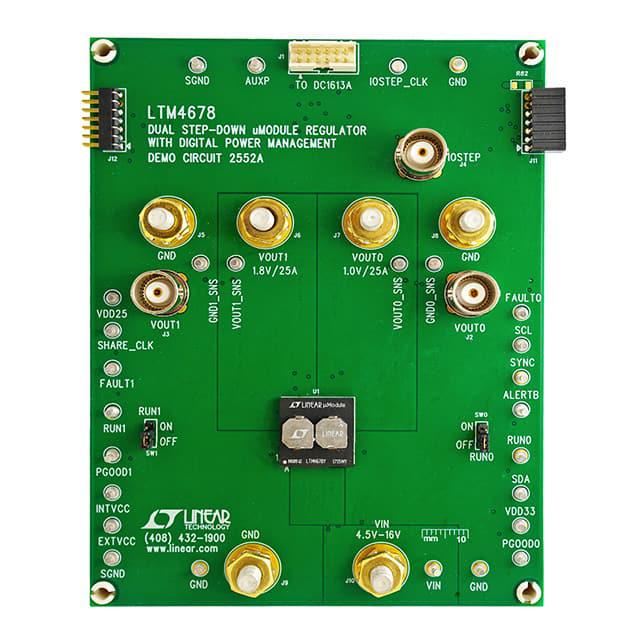 This is manufactured by Analog Devices Inc.. The manufacturer part number is DC2552A. Basic Purpose: dc/dc, step down. It is assigned with possible HTSUS value of 8473.30.1180. The product is rohs3 compliant. The possible product's input voltage is 4.5v ~ 16v. The switching frequency of the standard product is 500khz. In addition, it is reach unaffected. While, the output current includes 25a, 25a. It is a fully populated type. It is shipped in box. Its typical moisture sensitivity level is 1 (unlimited). It has a long 8 weeks standard lead time. The product offers buck regulator topology. Additionally, [Utilised IC / Part] is the used part of the product. The product µmodule®, is a highly preferred choice for users. Furthermore, the output voltage is 1v, 1.8v. The product is also supplied with contents, such as board(s). The product is designated with the ear99 code number Moreover, it corresponds to dc2552, a base product number of the product. The output and type include 2, non-isolated.