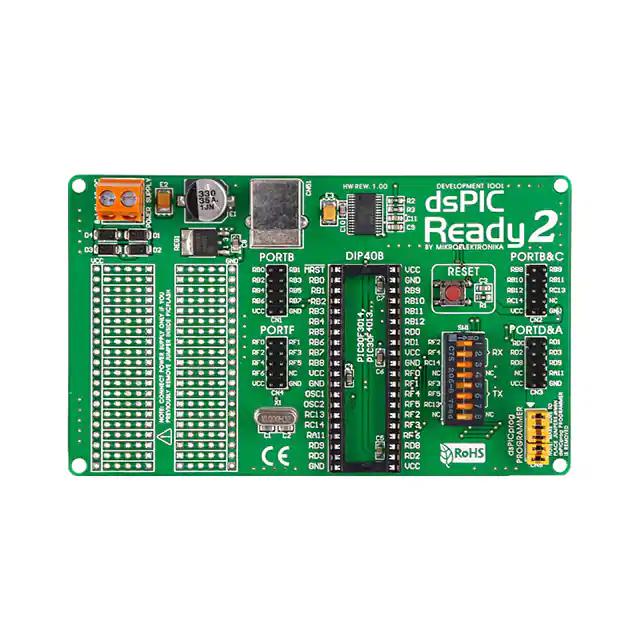 This is manufactured by MikroElektronika. The manufacturer part number is MIKROE-450. It is assigned with possible HTSUS value of 8473.30.1180. The product is rohs3 compliant. Platform Info: dspic-ready2. It comes in mcu 16-bit configuration. In addition, it is reach unaffected. It is a evaluation platform type. It is shipped in bulk. Its typical moisture sensitivity level is 1 (unlimited). Additionally, [Utilised IC / Part] is the used part of the product. The product is available in socket configuration. The product dspic®, is a highly preferred choice for users. dspic is the product's core processor. Contents Include: board(s). The product is designated with the ear99 code number