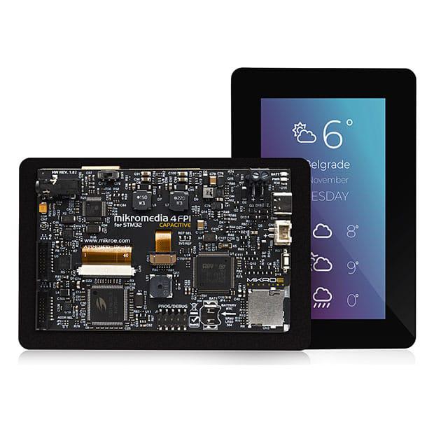 This is manufactured by MikroElektronika. The manufacturer part number is MIKROE-3838. It is assigned with possible HTSUS value of 8471.80.9000. The product is rohs3 compliant. Platform Info: mikromedia 4 for stm32f4 capacitive fpi with bezel. It comes in mcu 32-bit configuration. In addition, it is reach unaffected. It is a evaluation platform type. It is shipped in bulk. Features mikrobus shuttle click interconnect system. Its typical moisture sensitivity level is 1 (unlimited). Additionally, [Utilised IC / Part] is the used part of the product. The product is available in fixed configuration. The product stm32f4, is a highly preferred choice for users. arm® cortex®-m4 is the product's core processor. Contents Include: board(s), lcd. The product is designated with the 3a991a2 code number