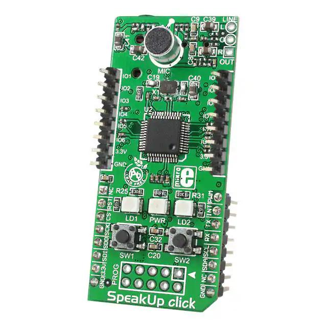 This is manufactured by MikroElektronika. The manufacturer part number is MIKROE-1534. It performs basic function of voice recognition. Additionally, [Utilised IC / Part] is the used part of the product. It is assigned with possible HTSUS value of 8471.80.9000. It is shipped in box. The product is rohs3 compliant. In addition, it is reach unaffected. Its typical moisture sensitivity level is 1 (unlimited). Platform Info: mikrobus™ click™. Contents Include: board(s). It has a long 5 weeks standard lead time. It comes in audio configuration. The product is designated with the 3a991a2 code number