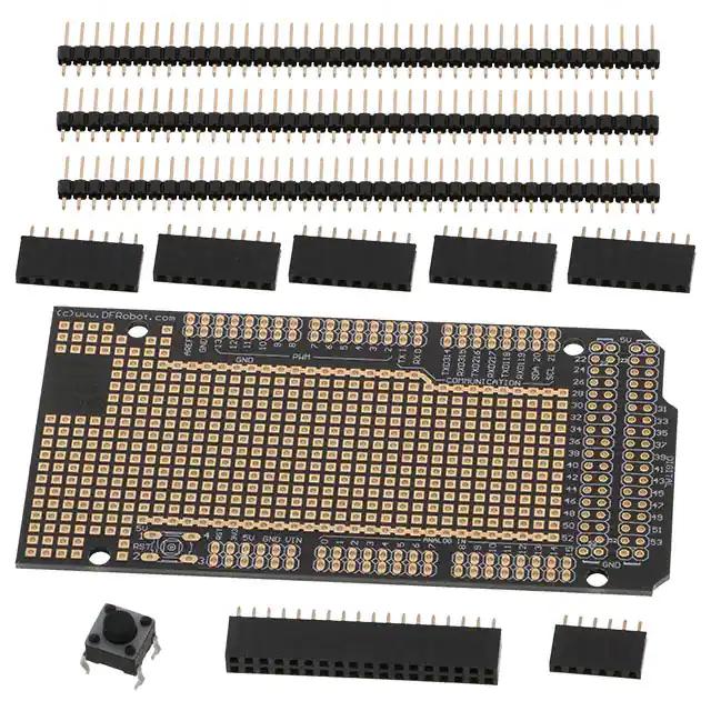 This is manufactured by DFRobot. The manufacturer part number is DFR0016. It performs basic function of plated through hole. It is assigned with possible HTSUS value of 8534.00.0040. It is shipped in bulk. The product is rohs3 compliant. Its typical moisture sensitivity level is 1 (unlimited). Platform Info: arduino mega. Contents Include: board(s), header(s). It has a long 4 weeks standard lead time. It comes in protoboard configuration. The product is designated with the ear99 code number