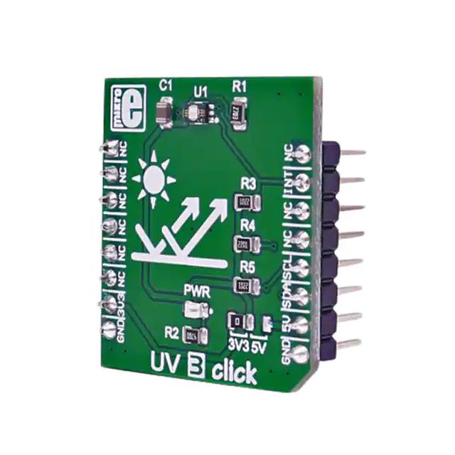 This is manufactured by MikroElektronika. The manufacturer part number is MIKROE-2736. It performs basic function of ultraviolet (uv). Additionally, [Utilised IC / Part] is the used part of the product. It is assigned with possible HTSUS value of 8473.30.1180. It is shipped in bulk. The product is rohs3 compliant. In addition, it is reach unaffected. Its typical moisture sensitivity level is 1 (unlimited). Platform Info: mikrobus™ click™. Contents Include: board(s). It comes in sensor configuration. The product is designated with the ear99 code number