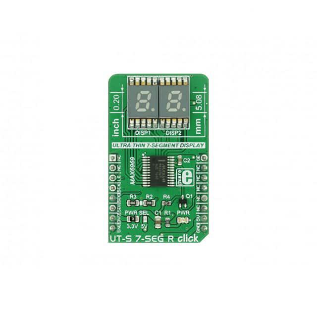 This is manufactured by MikroElektronika. The manufacturer part number is MIKROE-2840. It performs basic function of 7-segment 2-digit. Additionally, [Utilised IC / Part] is the used part of the product. It is assigned with possible HTSUS value of 8473.30.1180. It is shipped in bulk. The product is rohs3 compliant. In addition, it is reach unaffected. Its typical moisture sensitivity level is 1 (unlimited). Platform Info: mikrobus™ click™. Contents Include: board(s). It has a long 5 weeks standard lead time. It comes in display configuration. The product is designated with the ear99 code number