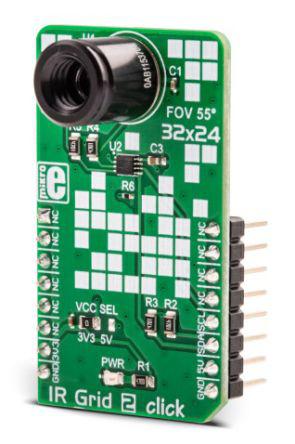 This is IR Grid 2 manufactured by MikroElektronika. The manufacturer part number is MIKROE-3194. It performs basic function of temperature (ir). Additionally, [Utilised IC / Part] is the used part of the product. It is assigned with possible HTSUS value of 8473.30.1180. It is shipped in bulk. The product is rohs3 compliant. In addition, it is reach unaffected. Its typical moisture sensitivity level is 1 (unlimited). Platform Info: mikrobus™ click™. Contents Include: board(s). It comes in sensor configuration. The product is designated with the ear99 code number