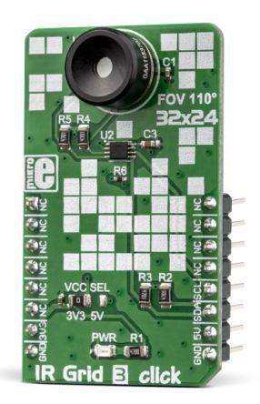 This is IR Grid 3 manufactured by MikroElektronika. The manufacturer part number is MIKROE-3217. It performs basic function of temperature (ir). Additionally, [Utilised IC / Part] is the used part of the product. It is assigned with possible HTSUS value of 8473.30.1180. It is shipped in bulk. The product is rohs3 compliant. In addition, it is reach unaffected. Its typical moisture sensitivity level is 1 (unlimited). Platform Info: mikrobus™ click™. Contents Include: board(s). It comes in sensor configuration. The product is designated with the ear99 code number