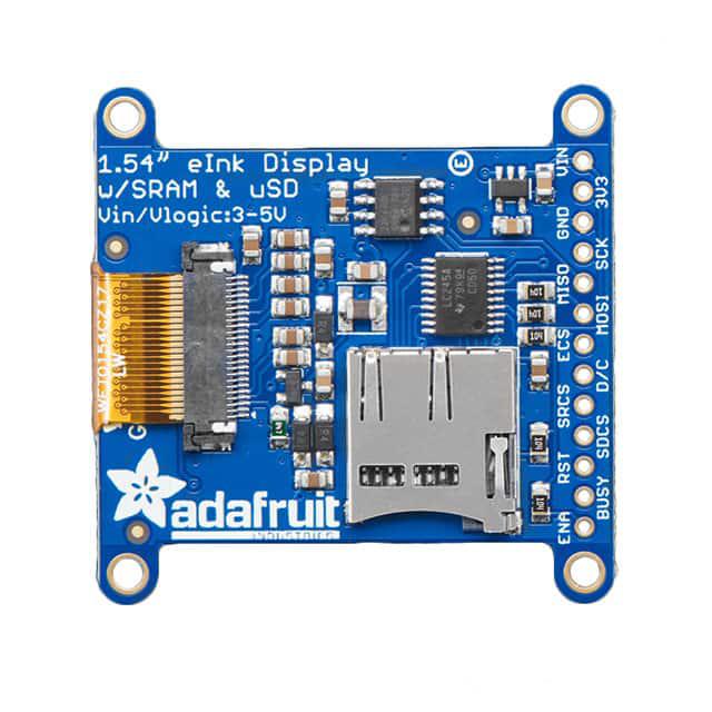 This is manufactured by Adafruit Industries LLC. The manufacturer part number is 3625. It performs basic function of eink electronic epaper 1.54". It is assigned with possible HTSUS value of 8528.59.1000. It is shipped in bulk. The product is rohs3 compliant. Its typical moisture sensitivity level is 1 (unlimited). Contents Include: board(s). It comes in display configuration. The product is designated with the ear99 code number