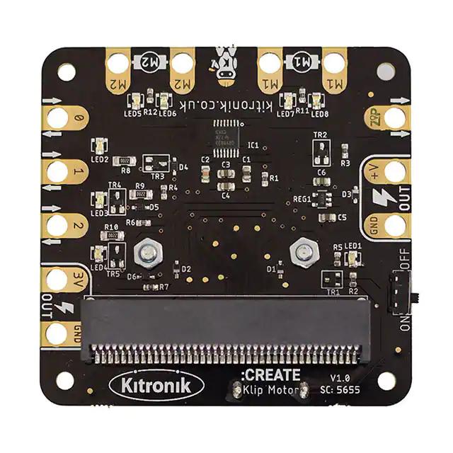 This is manufactured by Kitronik Ltd.. The manufacturer part number is 5655. It performs basic function of motor controller/driver. It is assigned with possible HTSUS value of 8537.10.9170. It is shipped in bulk. The product is rohs3 compliant. In addition, it is vendor undefined. Its typical moisture sensitivity level is not applicable. Platform Info: micro:bit. Contents Include: board(s). It has a long 4 weeks standard lead time. It comes in power management configuration. The product is designated with the ear99 code number
