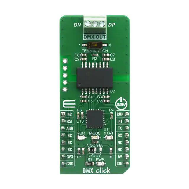 This is manufactured by MikroElektronika. The manufacturer part number is MIKROE-4130. It performs basic function of dmx512 lighting. Additionally, [Utilised IC / Part] is the used part of the product. It is assigned with possible HTSUS value of 8473.30.1180. It is shipped in bulk. The product is rohs3 compliant. In addition, it is reach unaffected. Its typical moisture sensitivity level is 1 (unlimited). Platform Info: mikrobus™ click™. Contents Include: board(s). It comes in interface configuration. The product is designated with the 3a991a2 code number