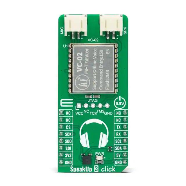 This is manufactured by MikroElektronika. The manufacturer part number is MIKROE-5420. It performs basic function of voice recognition. Additionally, [Utilised IC / Part] is the used part of the product. It is assigned with possible HTSUS value of 8473.30.1180. It is shipped in box. The product is rohs3 compliant. In addition, it is reach unaffected. Its typical moisture sensitivity level is 1 (unlimited). Platform Info: mikrobus™ click™. Contents Include: board(s). It has a long 5 weeks standard lead time. It comes in audio configuration. The product is designated with the 3a991a2 code number
