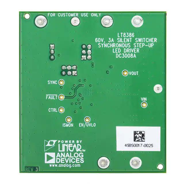 This is manufactured by Analog Devices Inc.. The manufacturer part number is DC3008A. It is assigned with possible HTSUS value of 8543.70.9860. It carries 3a output or channel current. The possible product's input voltage is 4v ~ 56v. The product is rohs3 compliant. In addition, it is reach unaffected. It is shipped in bulk. Its typical moisture sensitivity level is not applicable. It has a long 8 weeks standard lead time. The splendid features of the product include dimmable. Additionally, [Utilised IC / Part] is the used part of the product. Furthermore, the output voltage is 52v. The product is also supplied with contents, such as board(s). The product is designated with the ear99 code number The output and type include 1, non-isolated.