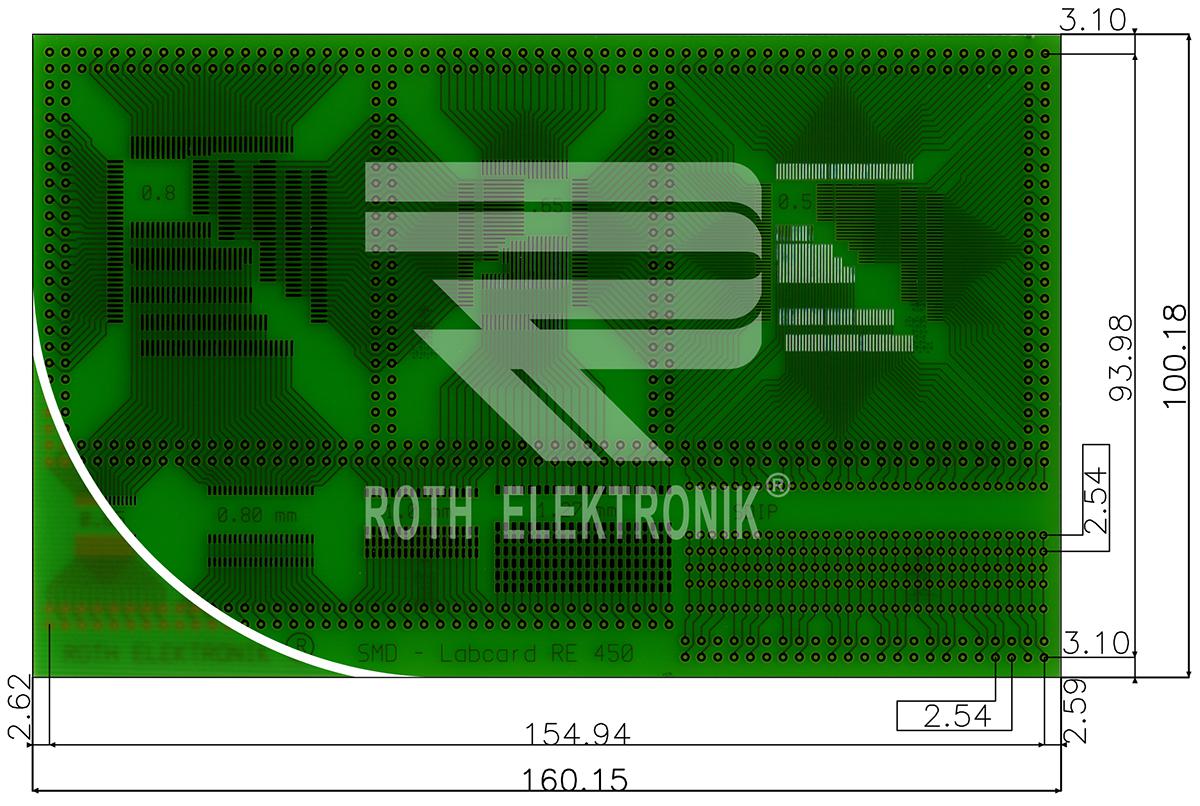 This is SMD Soldering Exercise Board Multi-Adaptor Epoxy Glass Single-Sided 100 x 160 x 1.5mm FR4 manufactured by Roth Elektronik. The manufacturer part number is RE450-LF. The given dimensions of the product include 160 x 100 x 1.5mm. Furthermore, the product is 100mm wide. Its accurate length is 160mm. It is 1.5mm thick. It comes in smd soldering exercise board configuration.