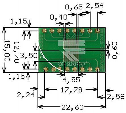 This is Surface Mount (SMT) Board TSSOP Epoxy Glass Double-Sided 20 x 15.5mm FR4 manufactured by Roth Elektronik. The manufacturer part number is RE933-03ST. The given dimensions of the product include 22.6 x 15 x 1.5mm. It is 1.5mm thick. Furthermore, the product is 15mm wide. Its accurate length is 22.6mm. It comes in multi adapter board configuration.