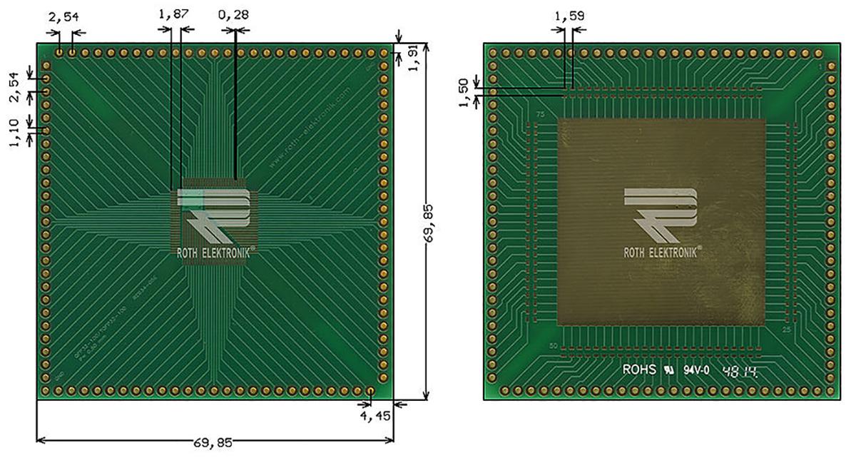 This is Double Sided Extender Board Adapter Multiadapter With Adaption Circuit Board 69.85 x 69.85 x 1.5mm manufactured by Roth Elektronik. The manufacturer part number is RE934-05E. The given dimensions of the product include 69.85 x 69.85 x 1.5mm. It is 1.5mm thick. Furthermore, the product is 69.85mm wide. Its accurate length is 69.85mm. It comes in multiadapter with adaption circuit board configuration.