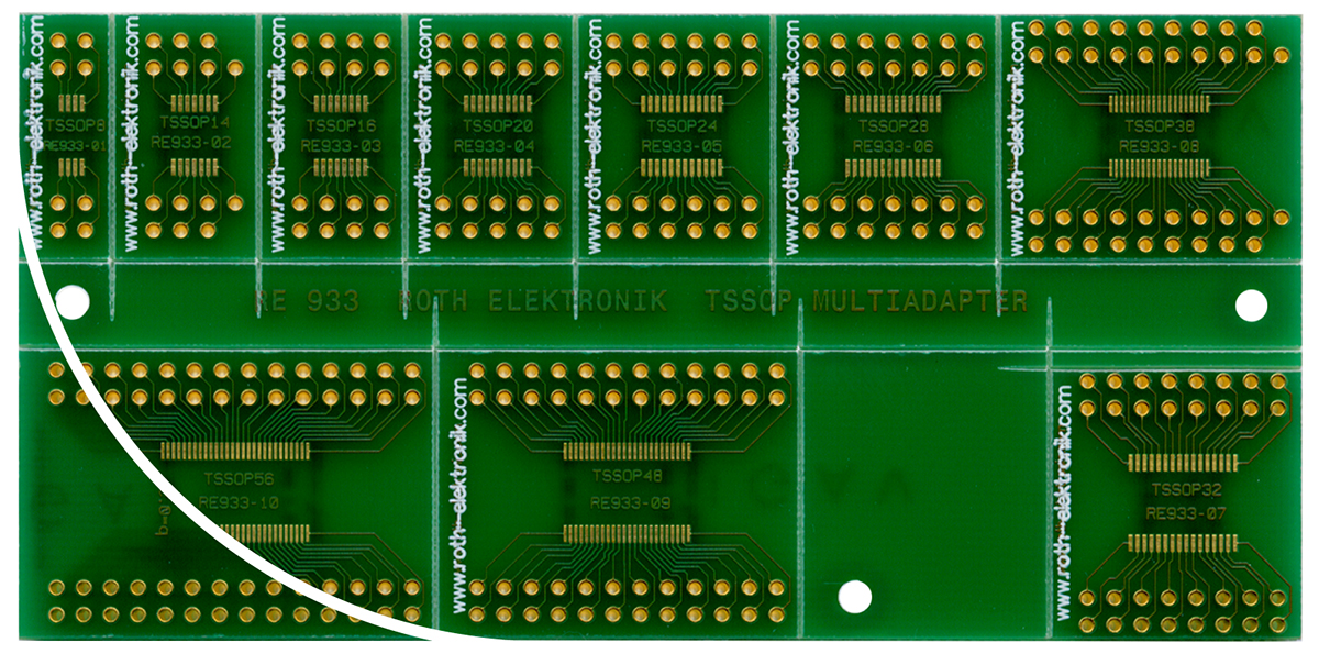 This is Surface Mount (SMT) Board TSSOP Epoxy Glass Double-Sided 120.03 x 58.81 x 1.5mm FR4 manufactured by Roth Elektronik. The manufacturer part number is RE933. The given dimensions of the product include 120.03 x 58.81 x 1.5mm. Furthermore, the product is 58.81mm wide. Its accurate length is 120.03mm. It is 1.5mm thick. It comes in multi adapter board configuration.