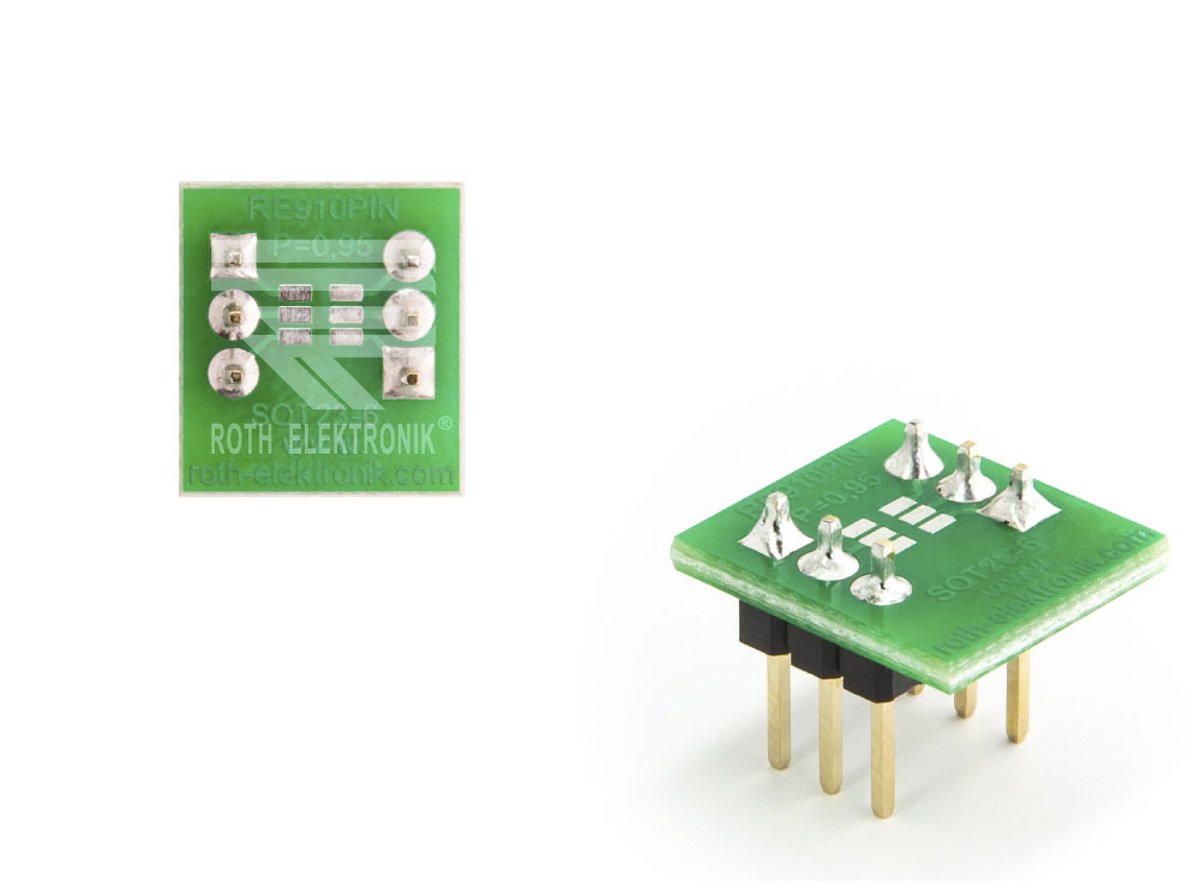 This is PCB Adapter SOT Epoxy Glass Double-Sided 13.5 x 12.3 x 1.5mm manufactured by Roth Elektronik. The manufacturer part number is RE910PIN. The given dimensions of the product include 13.5 x 12.3 x 1.5mm. It is 1.5mm thick. Furthermore, the product is 12.3mm wide. Its accurate length is 13.5mm. It comes in multi adapter board configuration.