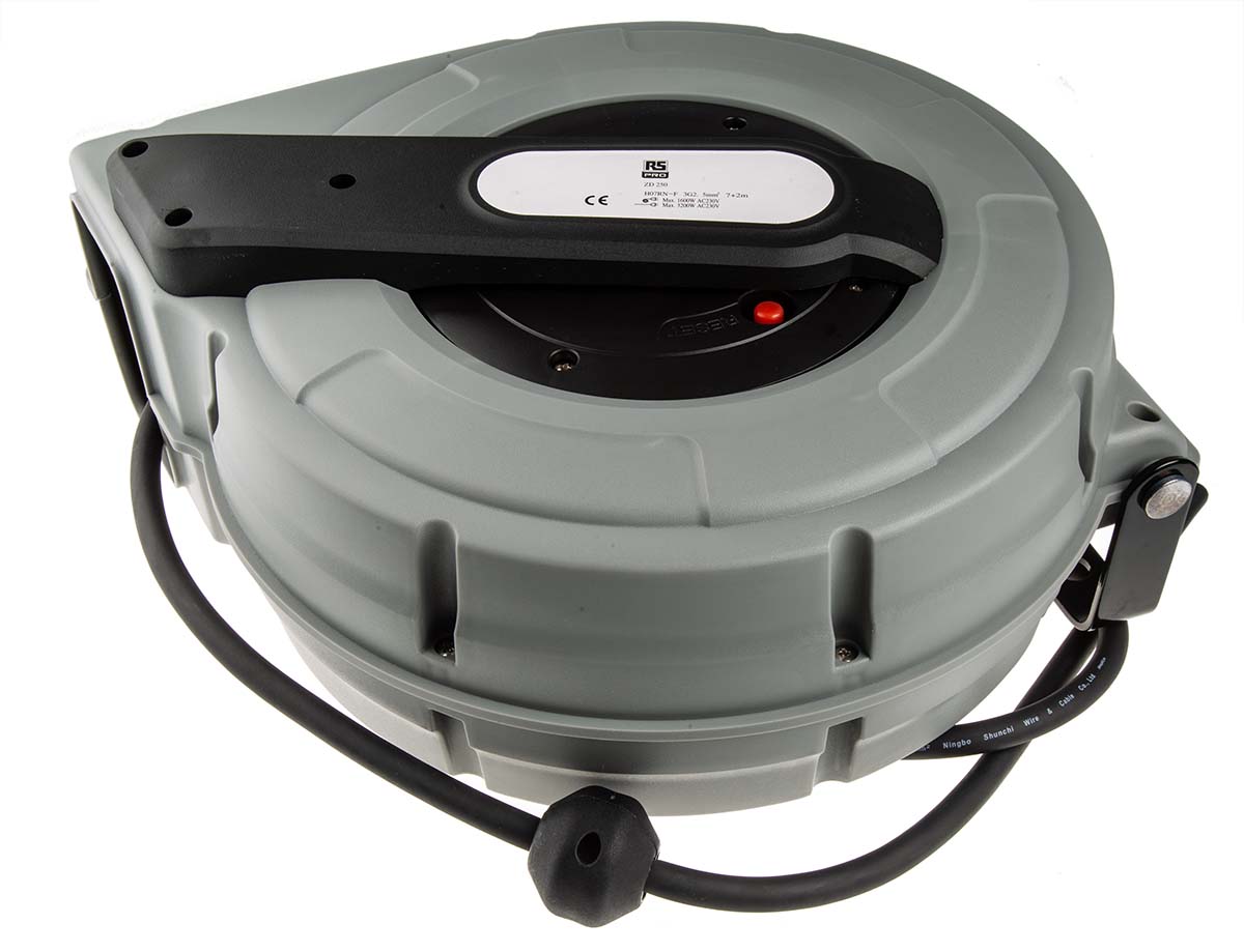 This is 100m Extension Reel1 Socket With Auto Rewind230 V ac IP20 IP44Black manufactured by RS Pro. The manufacturer part number is 171-7881. Moreover, the product has a nominal 230 v ac voltage rating. Furthermore, the cable has a 9m of length.