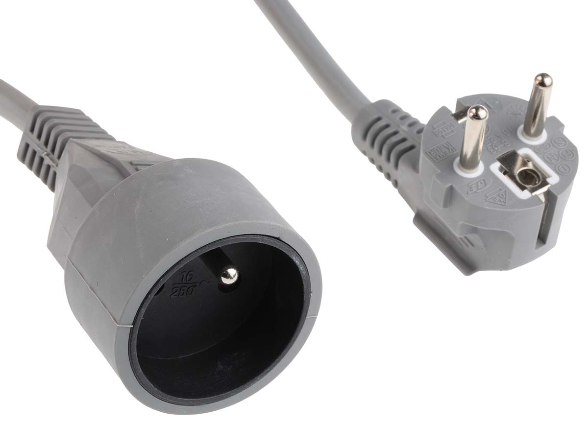 This is 5m Extension Lead CEE 7/7 to Schuko (CEE 7/7) 16 A 250 V manufactured by RS Pro. The manufacturer part number is 296-387. Moreover, the product has a nominal 250 v voltage rating.