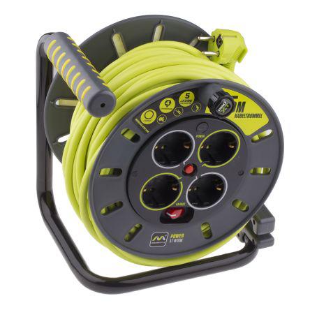 This is RS PRO 25m 4 Socket 13A Extension Reel 240 V manufactured by Masterplug. The manufacturer part number is OMG25164SL-PX. Moreover, the product has a nominal 240 v voltage rating. Furthermore, the cable has a 25m of length. It comes in cable reel configuration.