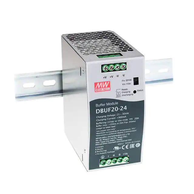 This is manufactured by MEAN WELL USA Inc.. The manufacturer part number is DBUF20-24. It is assigned with possible HTSUS value of 8504.40.9580. It is shipped in box. The product is rohs3 compliant. It is a type of buffer module accessory. In addition, it is reach unaffected. Its typical moisture sensitivity level is not applicable. Moreover, it corresponds to dbuf20, a base product number of the product. It has a long 23 weeks standard lead time. The product is suitable for use with 24v power supplies. The product is designated with the ear99 code number
