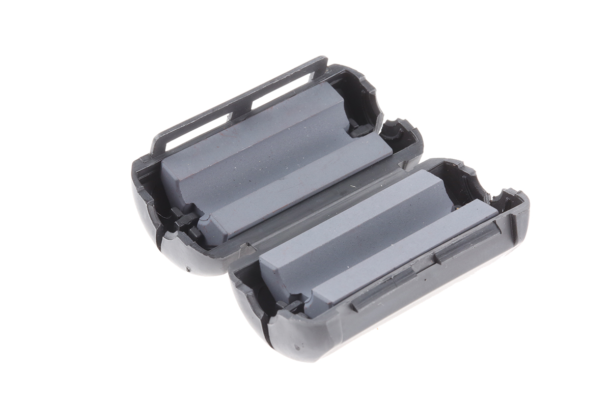 This is Openable Ferrite Sleeve 20 x 9.8 x 39.4mm For EMI Suppression Apertures: 1 Diameter 6.6mm manufactured by Fair-Rite. The manufacturer part number is 0461164281. The product is made from highly stable and reliable 61 material. It comes in round cable snap-its configuration.